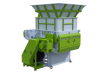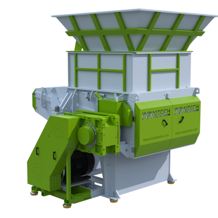 2) The material to be shredded is fed to the rotor by a PLC controlled hydraulic pusher.