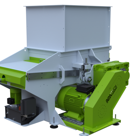 The Inan Tech 800 Shredder is a compact industrial shredding machine developed for small to medium-scale plastic recycling operations. It is specifically designed for facilities where space efficiency and controlled material preparation are essential. The system ensures reliable pre-shredding of production scrap and plastic waste before secondary processing stages.